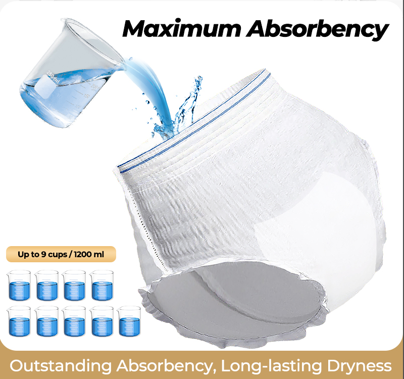 A kiváló nedvszívó képesség és szivárgásvédelem segít megelőzni az éjszakai átnedvesedést – ezáltal nyugodt, zavartalan alvást biztosít a viselőnek és az ápolónak is.