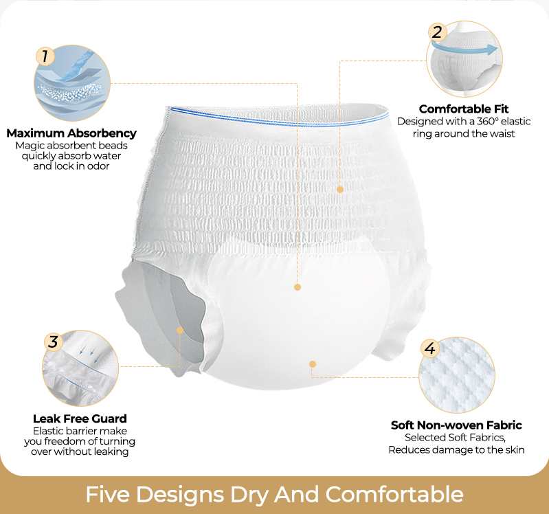 Ez a felhúzható, bugyiformájú inkontinencia nadrág ideális megoldás mindennapi használatra azoknak, akik aktív életet élnek, de extra biztonságra vágynak. A hagyományos alsóneműhöz hasonló kialakítás diszkréten illeszkedik a ruházat alá, miközben megbízható védelmet nyújt közepes vagy enyhe vizeletvesztés esetén.